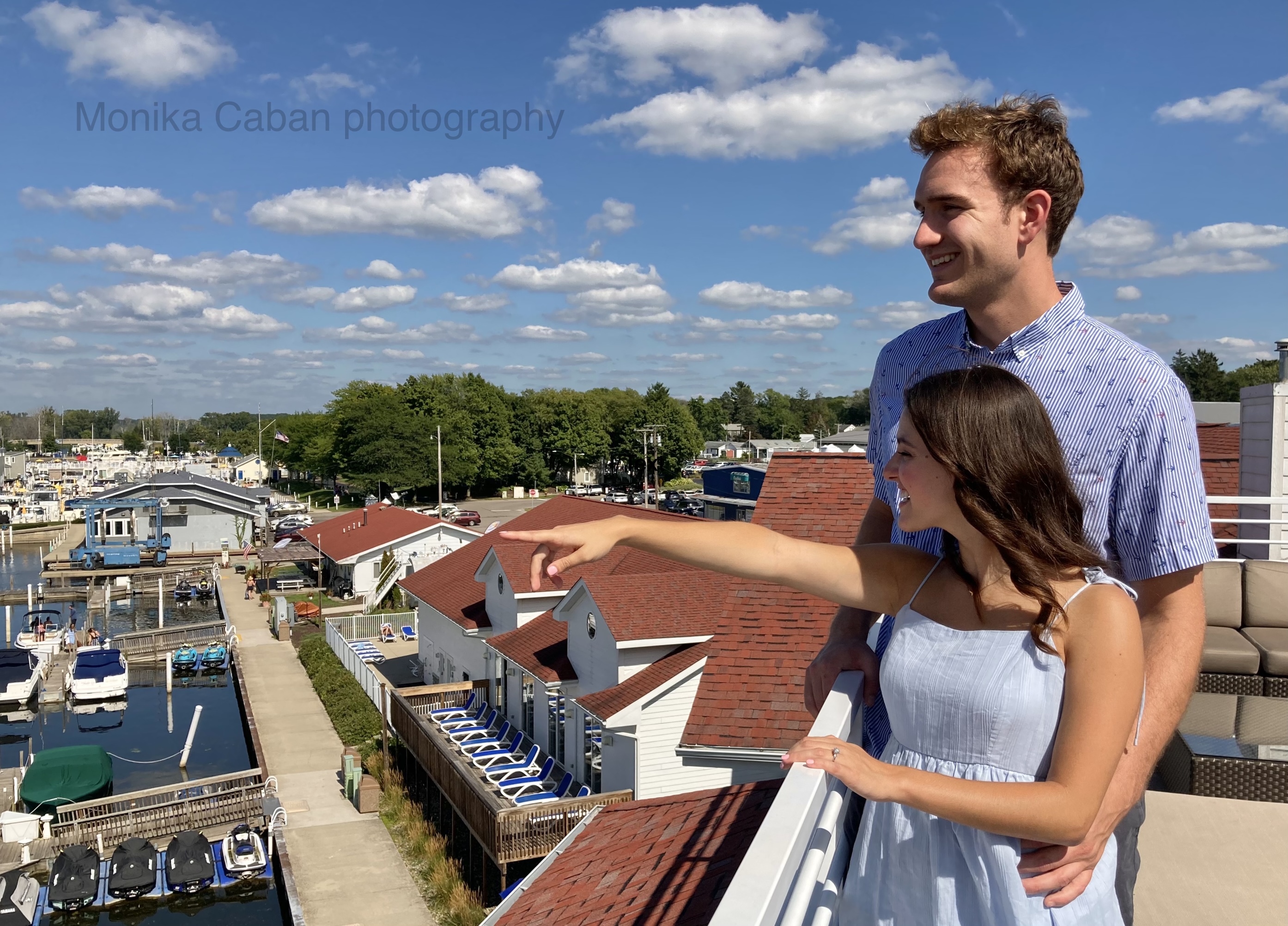 Perfectly romantic, scenic, and joyful wedding proposal on the rooftop of Marina Grand Resort in New Buffalo, Michigan